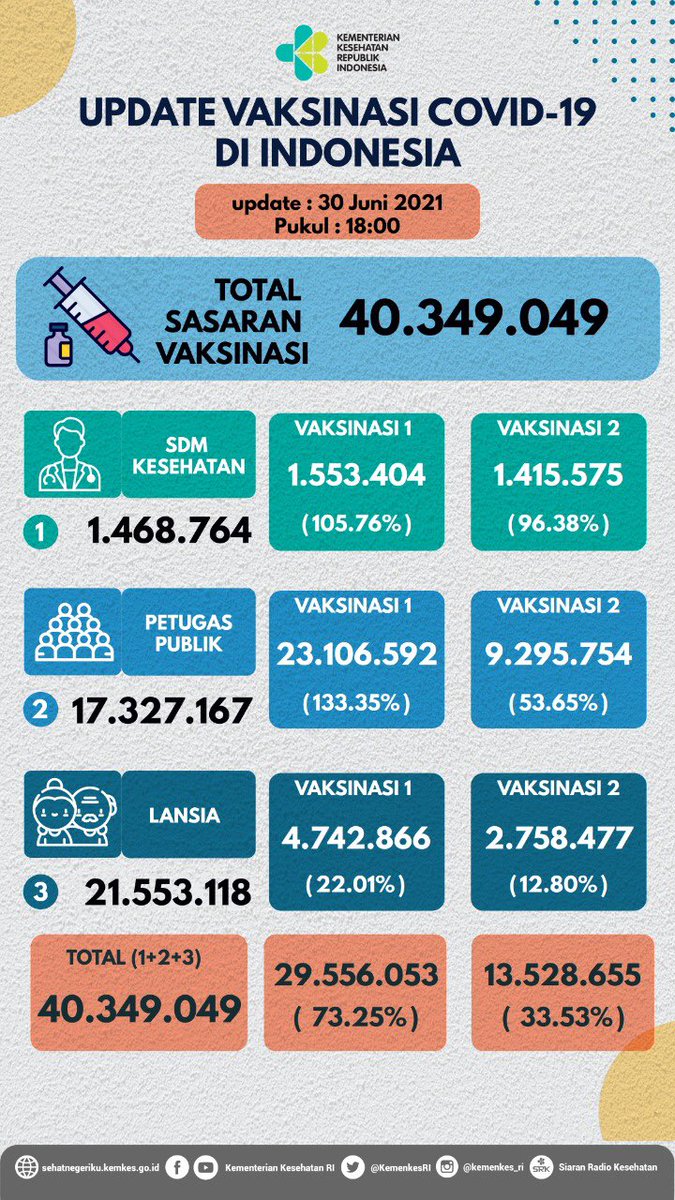 Kemenkes Ri On Twitter Update Perkembangan Vaksinasi Covid 19 Di Indonesia Per Tanggal 30 Juni 2021 Pukul 18 00 Wib Vaksinasinasional