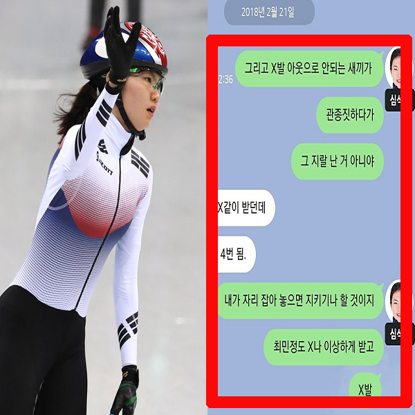 메시지에는 올림픽에 함께 출전한 최민정23 김아랑26을 헐뜯는 내용이 담겨있었습니다.
